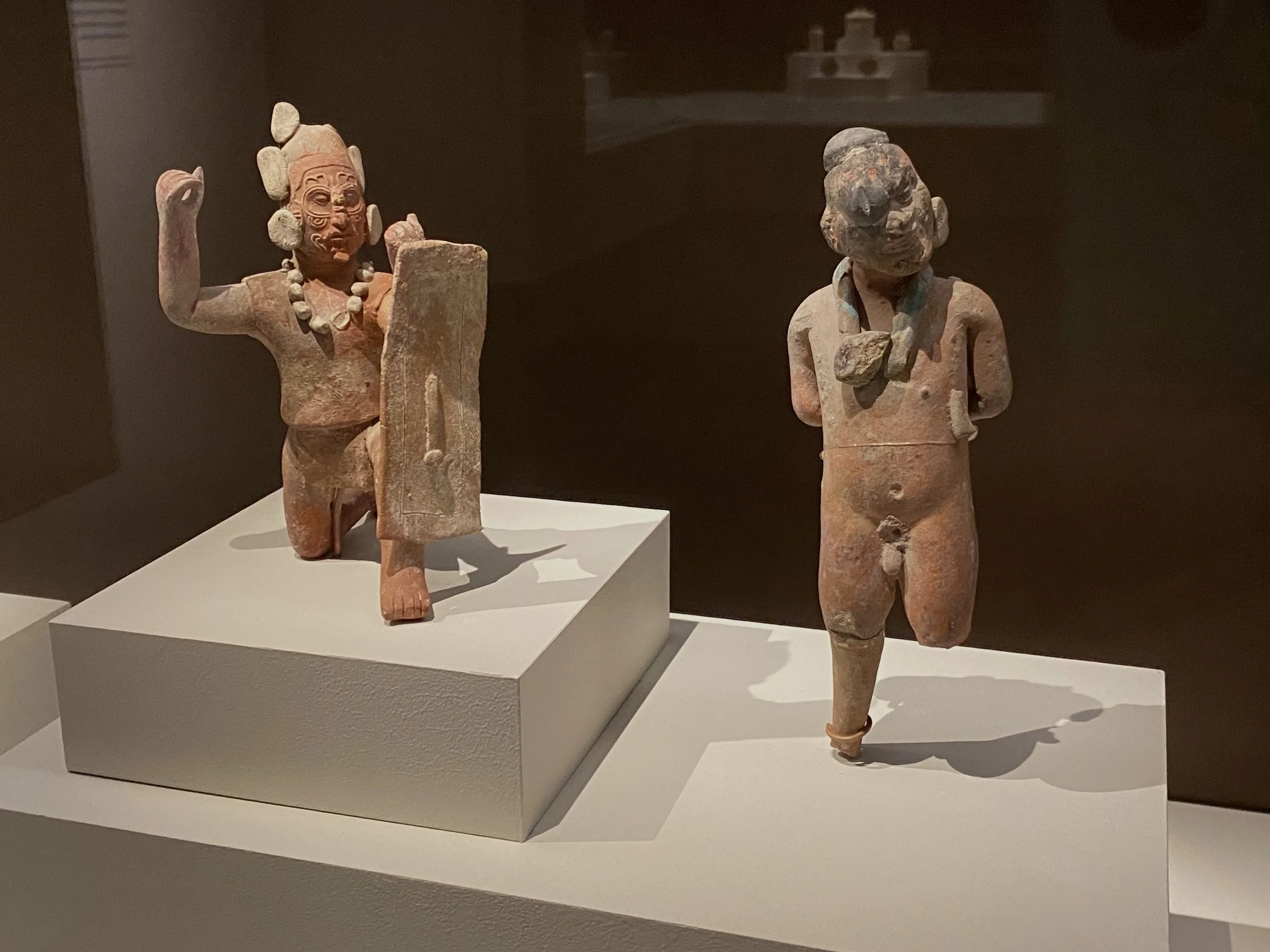 Two warriors sculpted and painted with earthen materials tell a story of victory and defeat. On a Sunday while visiiting the newly designed Arts of Indigenous America exhibit my interest was peaked in the gallery of Mayan Art.